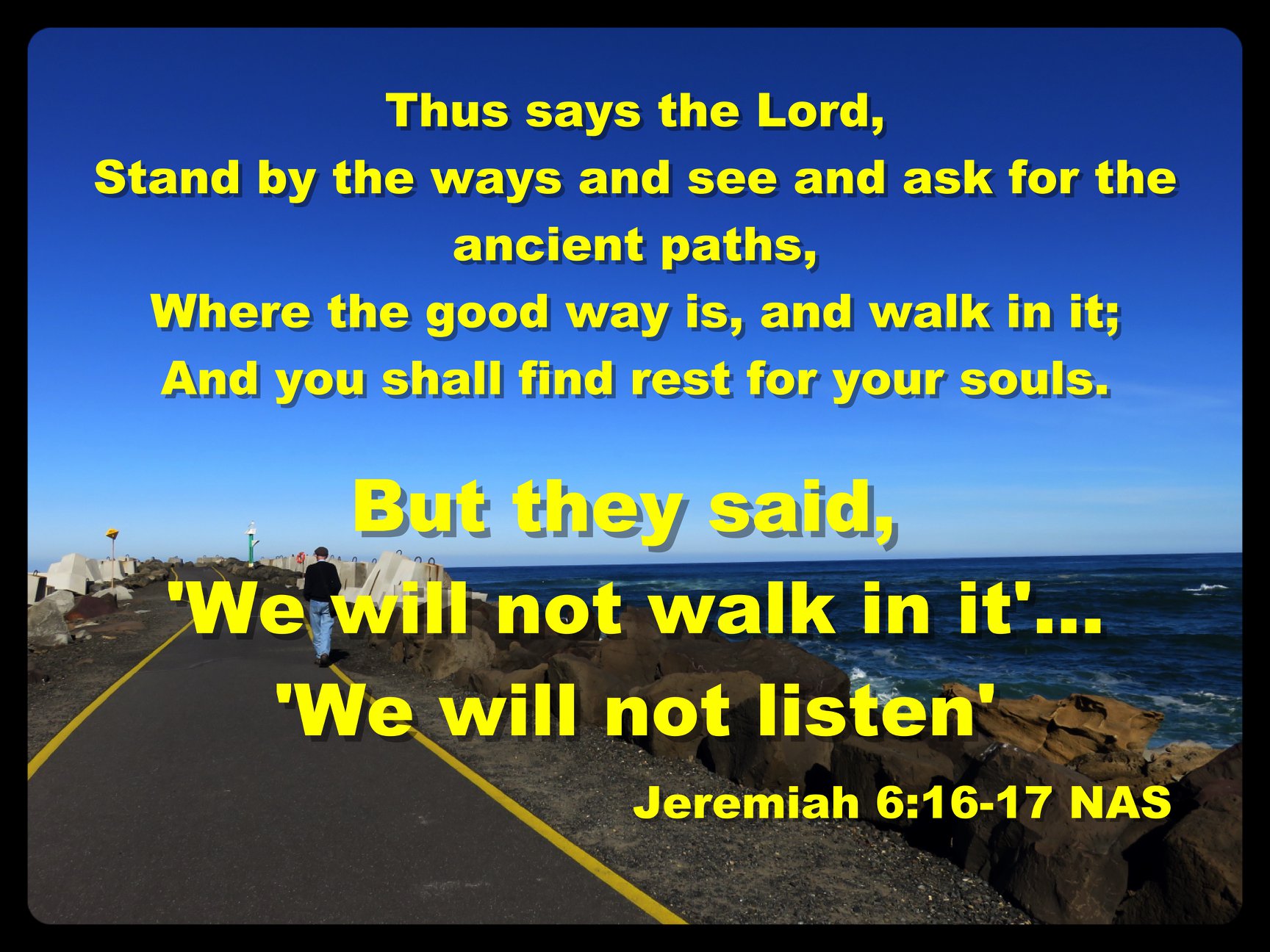 Thus says the Lord: "Stand by the ways and see, and ask for the ancient paths, where the good way is, and walk therein, and you shall find rest for your souls." But they said, "We will not walk therein... We will not listen"(Jeremiah 6:16-17).